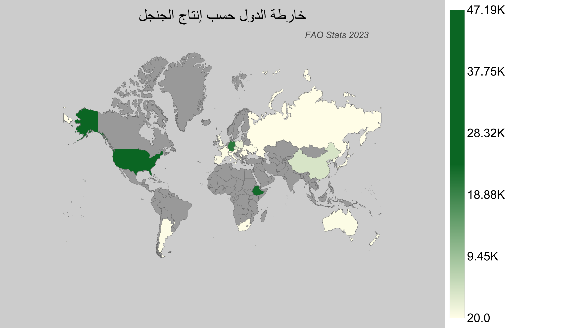 أكبر الدول المنتجة لنبات الجنجل حسب النسبة