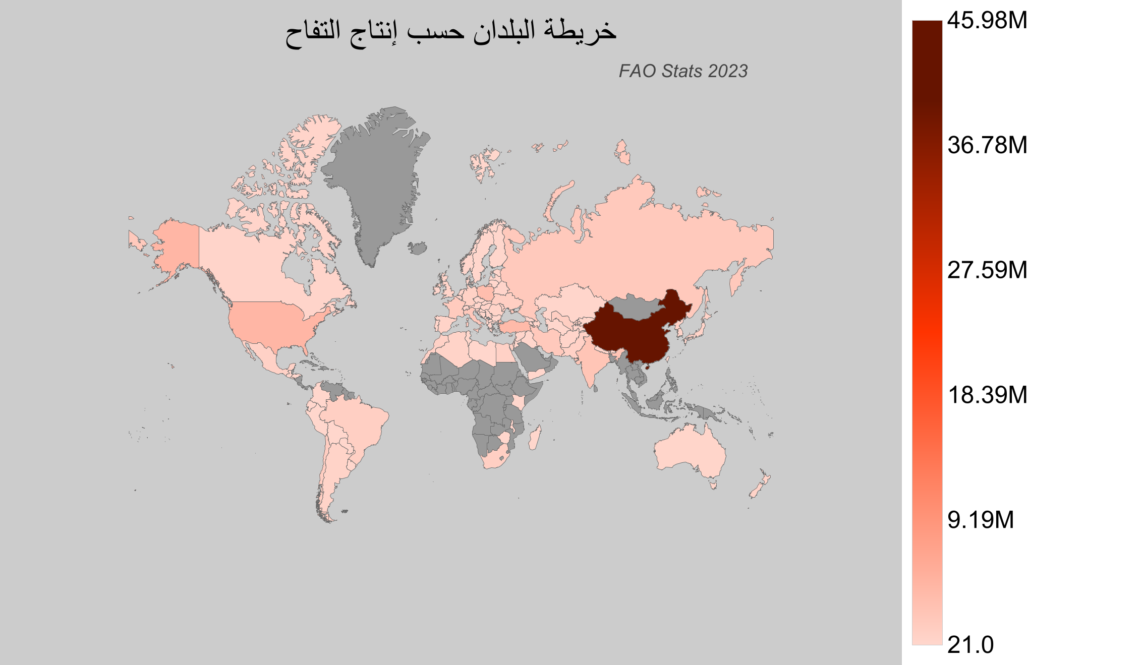 - الصين: أكبر منتج للتفاح بحوالي 45.9 مليون طن.