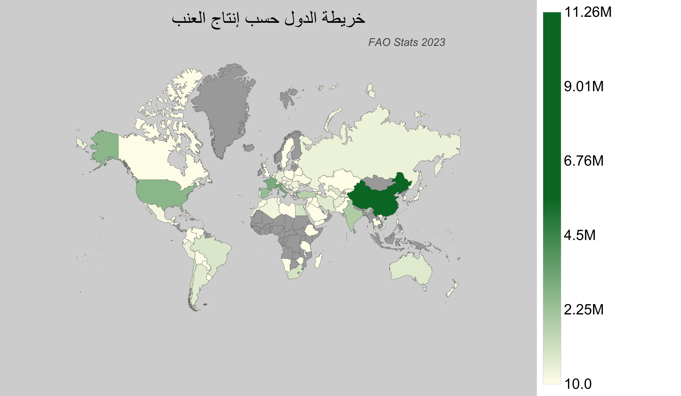 - الصين: تنتج حوالي 11.27 مليون طن من العنب، مما يجعلها المساهم الأكبر عالميًا في إنتاج العنب.