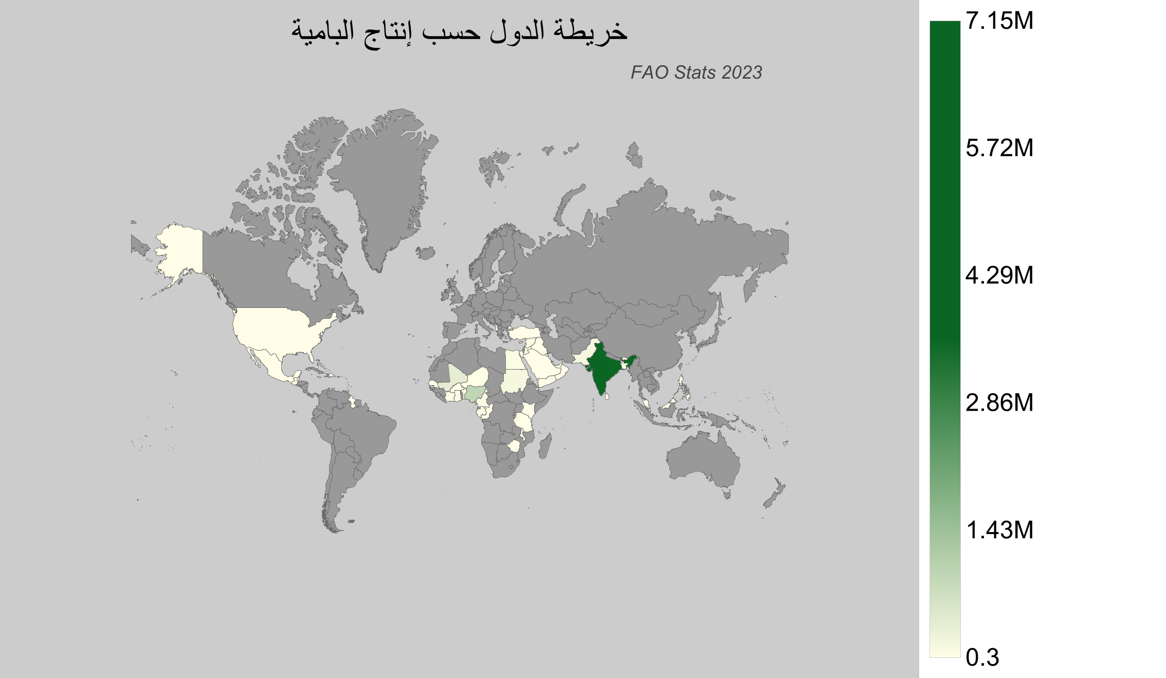 - الهند: حوالي 7.2 مليون طن، الرائدة عالميًا في إنتاج البامية.