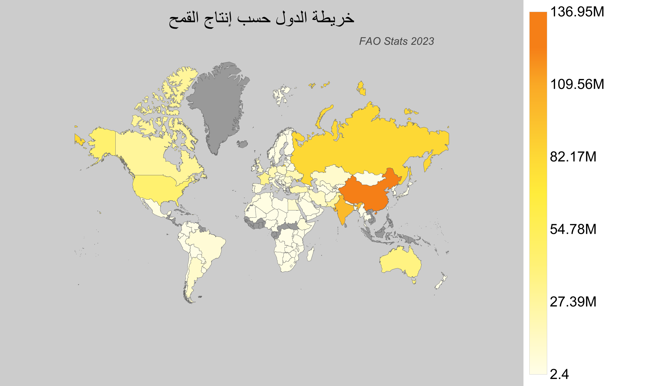 - الصين: حوالي 137 مليون طن، تجعلها الدولة الرائدة في إنتاج القمح.