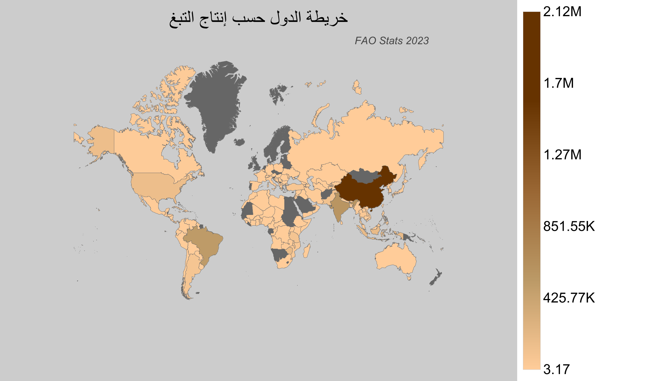 - مصر: بناءً على إحصائيات FAO، لا تعتبر مصر منتجًا للتبغ.