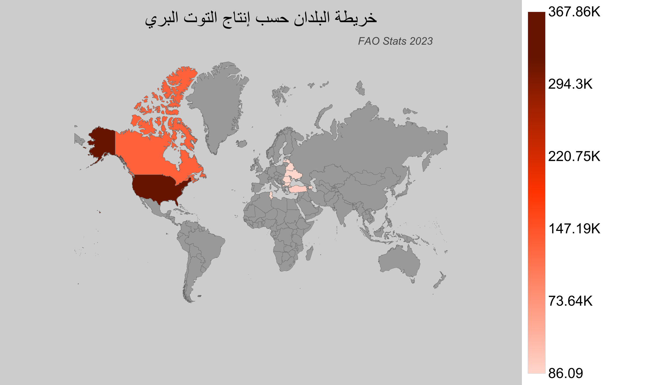 - مصر: وفقًا لبيانات FAO، مصر ليست من الدول المنتجة للتوت البري.