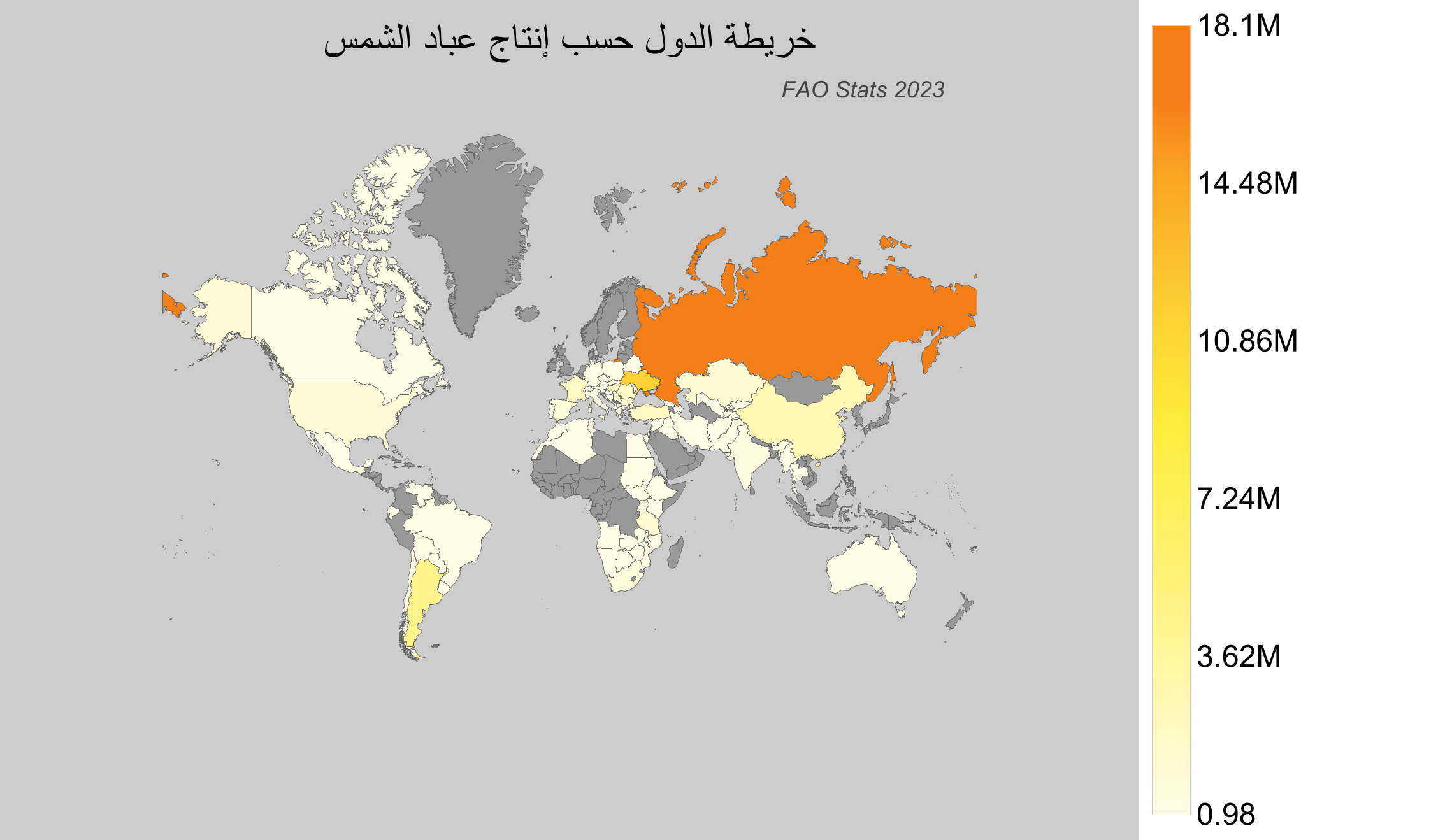 - روسيا هي المنتج الأول لدوّار الشمس بإنتاج يقدر بحوالي 18.1 مليون طن.