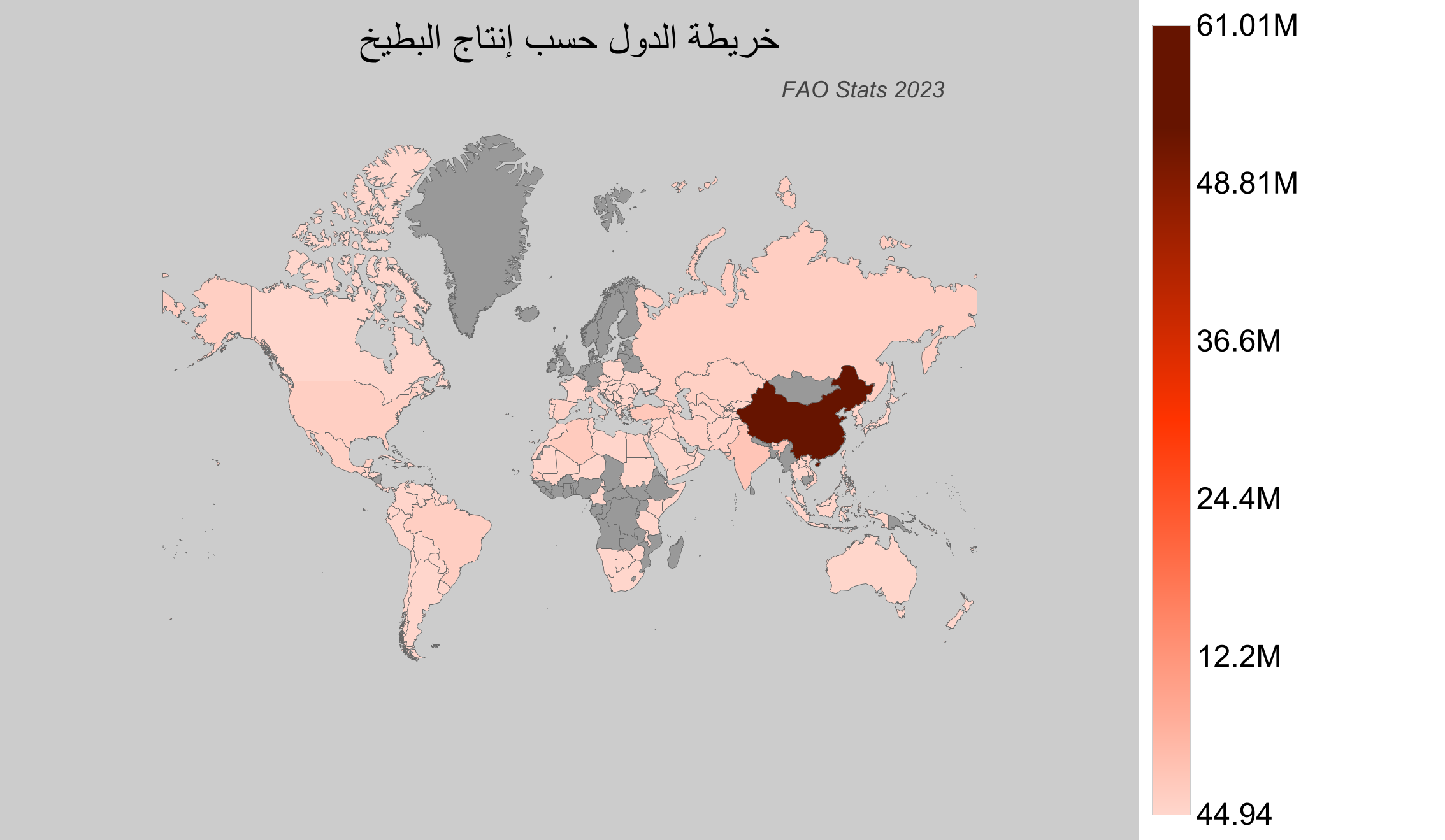 - الصين: أنتجت حوالي 14.1 مليون طن في عام 2023، مما يجعلها أكبر دولة منتجة للبطيخ في العالم.