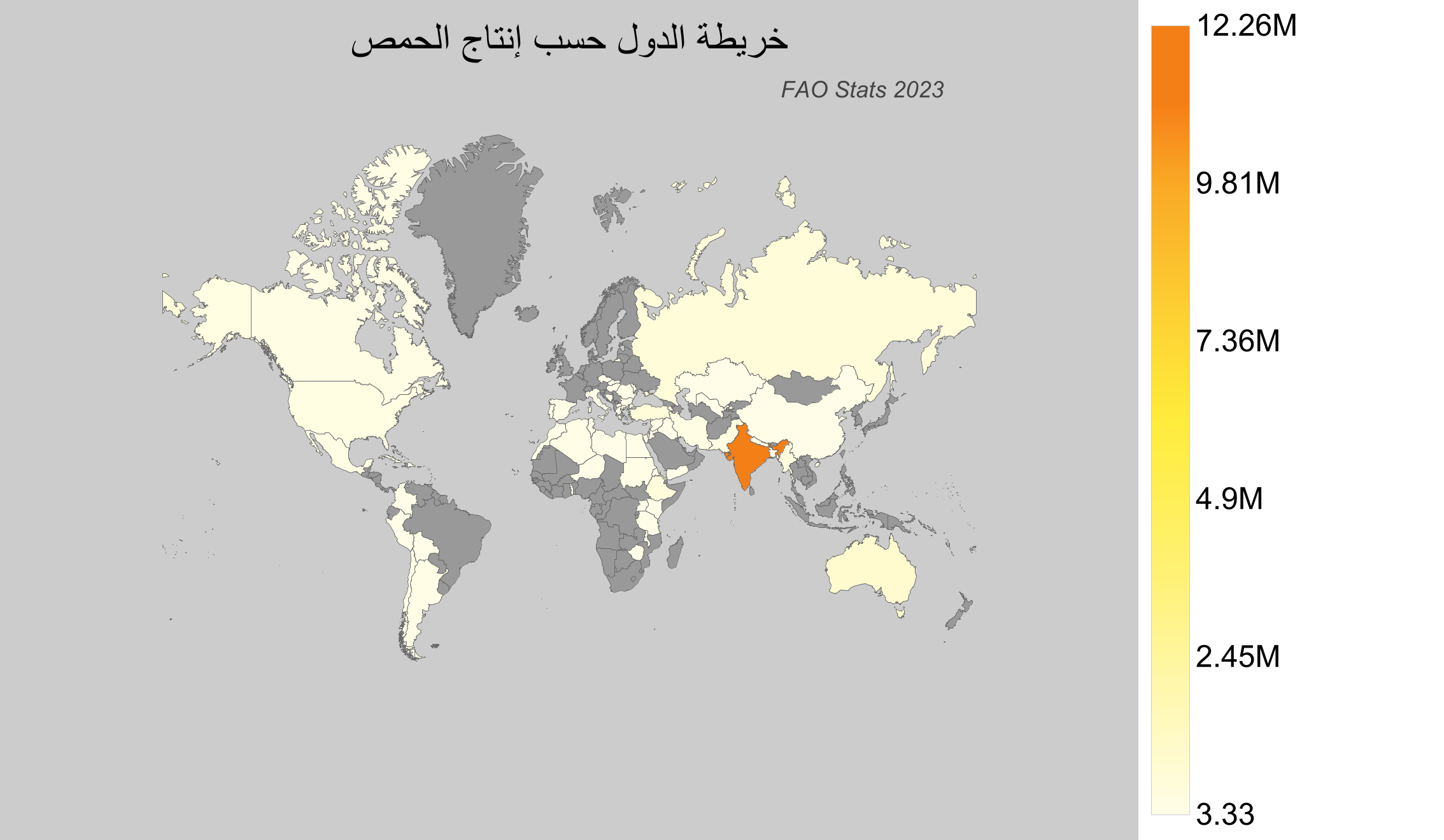 - الهند: أكبر منتج للحمص بحوالي 12.27 مليون طن.