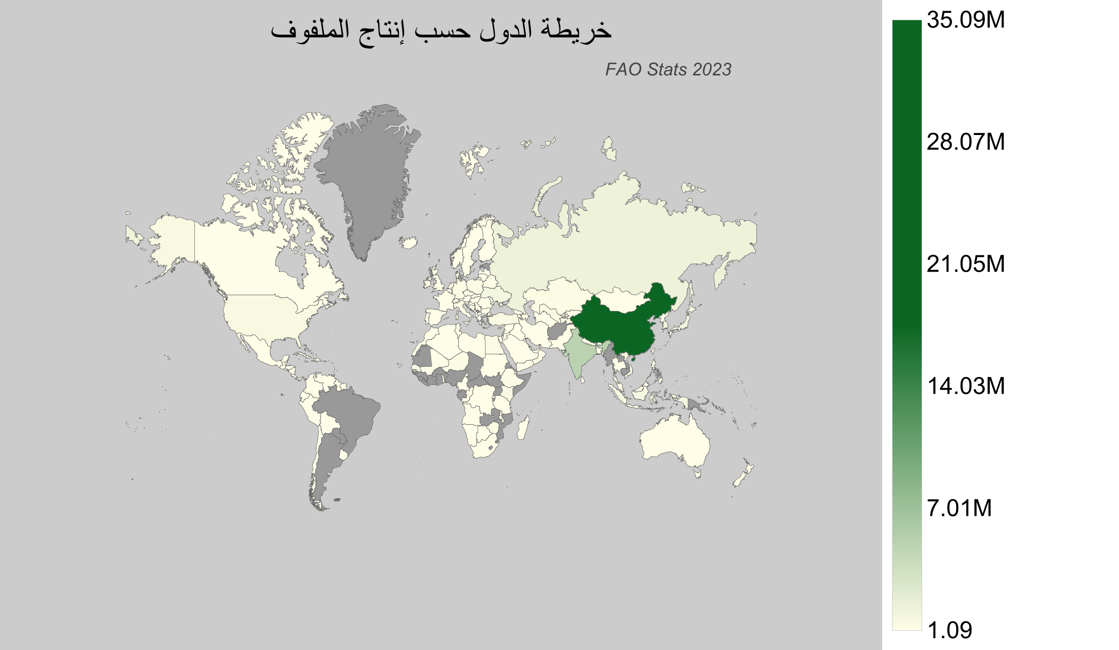 - الصين تقود إنتاج الملفوف العالمي بإنتاج قدره حوالي 35 مليون طن.