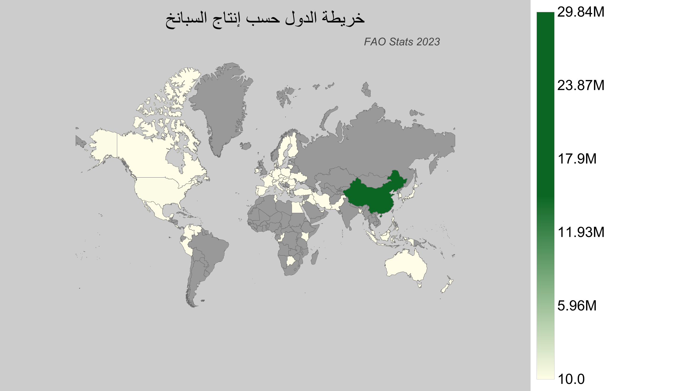 أكبر الدول المنتجة للسبانخ من حيث الحصة