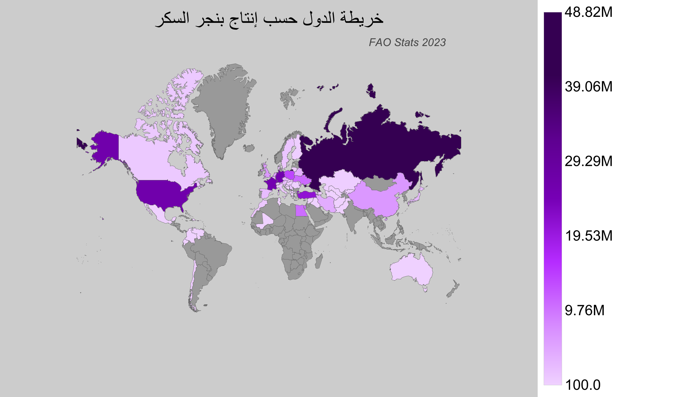 - روسيا: إنتاج حوالي 48.8 مليون طن، وهي تعتبر أكبر منتج لبنجر السكر في العالم.