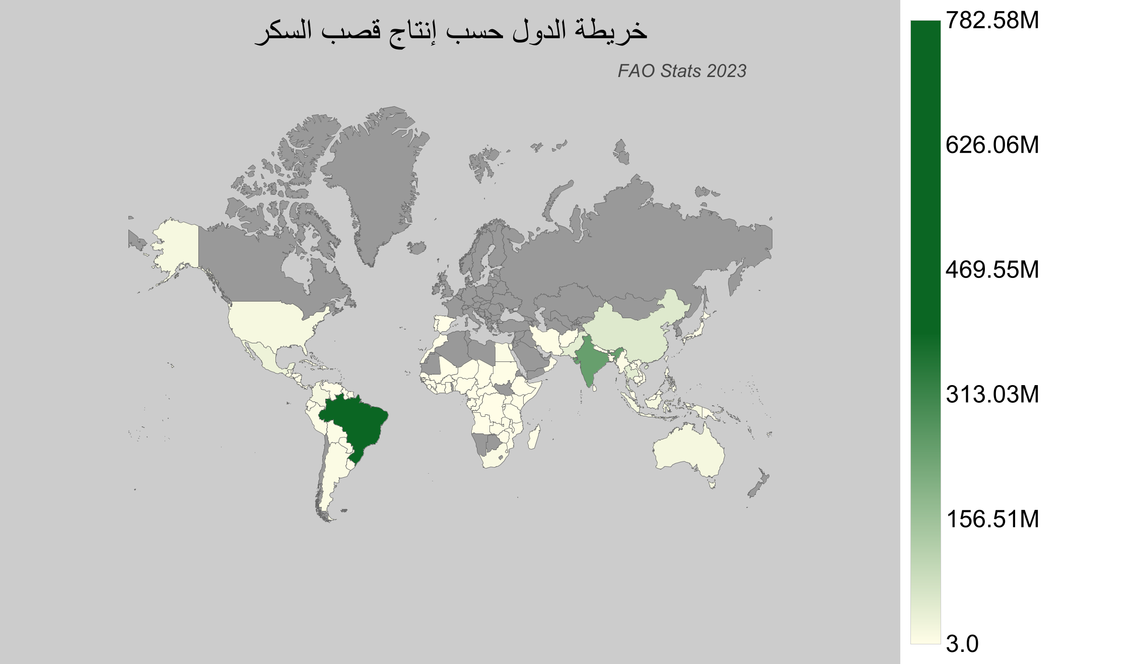 الدول الرائدة في إنتاج قصب السكر حسب النسبة